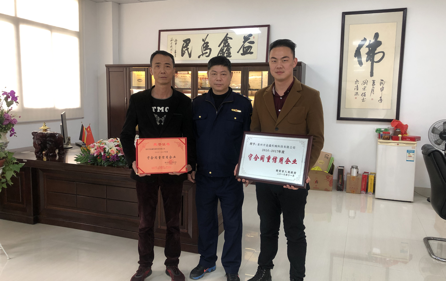 堅守“誠信”底線,贏得企業發展 | 益鑫磚機榮獲“泉州市守合同重信用企業”榮譽